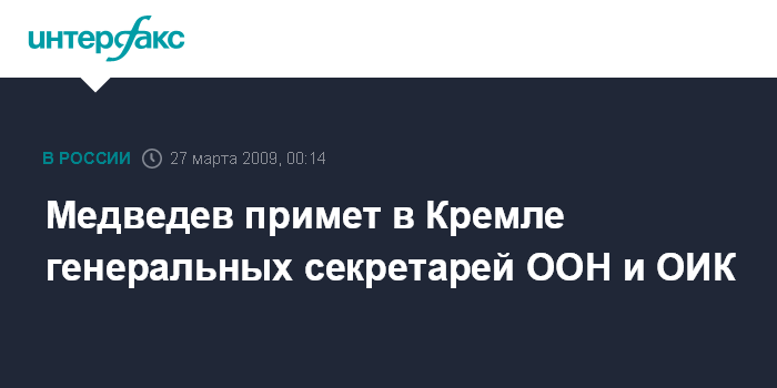 Медведев примет в Кремле генеральных секретарей ООН и ОИК