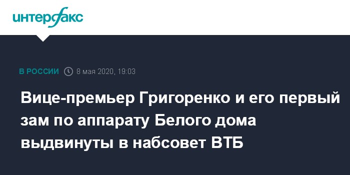 Вице-премьер Григоренко и его первый зам по аппарату Белого дома выдвинуты в набсовет ВТБ