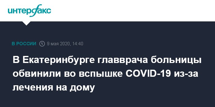 Москва. 9 мая. INTERFAX.RU - Чкаловский районный суд Екатеринбурга привлек к административной ответственности (ч.2 ст. 6.3 КоАП РФ) главного врача больницы №24 Алексея Малинкина из-за его решения об амбулаторном лечении пациентов с коронавирусом, сообщили агентству "Интерфакс" в пресс-службе свердловского областного суда.