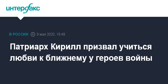 "Мы сейчас также особенно молимся о том, чтобы Господь оградил всех нас от того страшного поветрия, которое пришло в этот юбилейный год к нам, которое унесло и уносит жизни людей. Но, может быть, память о великих героях Отечественной войны поможет нам быть более мужественными и в условиях этой напасти, помня, что мы должны в этих условиях думать не только о своей собственной жизни, но и о жизни тех, кто рядом с нами, - по примеру героев Великой Отечественной войны", - сказал патриарх Кирилл.
