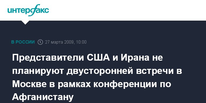 Представители США и Ирана не планируют двусторонней встречи в Москве в рамках конференции по Афганистану