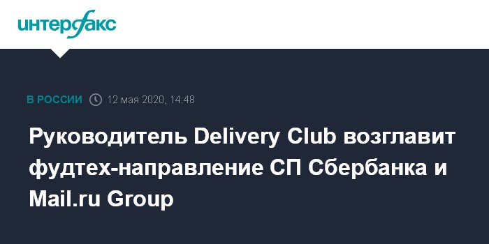 Руководитель Delivery Club возглавит фудтех-направление СП Сбербанка и Mail.ru Group
