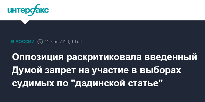 Москва. 12 мая. INTERFAX.RU - Оппозиционные политики и правозащитники раскритиковали закон о запрете участвовать в выборах судимых по 50 статьям средней тяжести, который Госдума приняла во втором чтении. Критики закона считают, что он станет новым инструментом отсечения неугодных кандидатов.