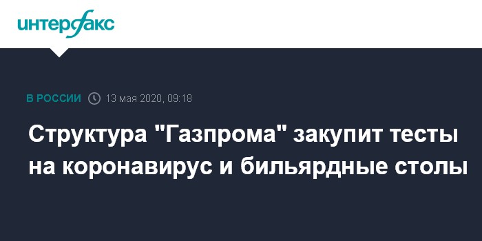 Структура "Газпрома" закупит тесты на коронавирус и бильярдные столы