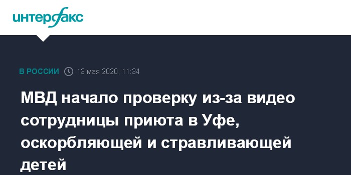 Москва. 13 мая. INTERFAX.RU - Полицейские проводят проверку по факту распространения в соцсети видеозаписи, в которой сотрудница социального приюта в Уфе грубо разговаривает с воспитанниками, а также провоцирует детей бить друг друга.