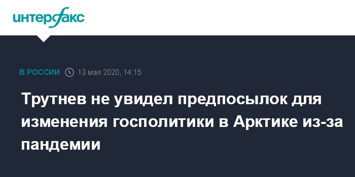 Москва. 13 мая. INTERFAX.RU - Замедление экономики страны из-за ограничительных мер по коронавирусу не скажется на реализации запланированной государственной политики в Арктике, уверен курирующий Арктику вице-премьер Юрий Трутнев.