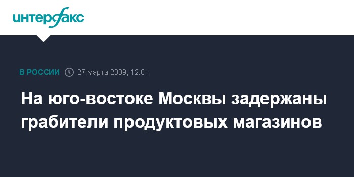 Москва. 27 марта. INTERFAX.RU - На юго-востоке Москвы задержаны двое грабителей продуктовых магазинов, еще двоим удалось скрыться, сообщили "Интерфаксу" в пресс-службе Управления внутренних дел по ЮВАО в пятницу.