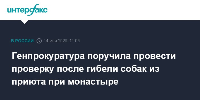 Москва. 14 мая. INTERFAX.RU - Генеральная прокуратура РФ поручила провести проверку по факту гибели собак из Свято-Казанского монастыря в Тульской области, следует из документа, текст которого имеется в распоряжении "Интерфакса".