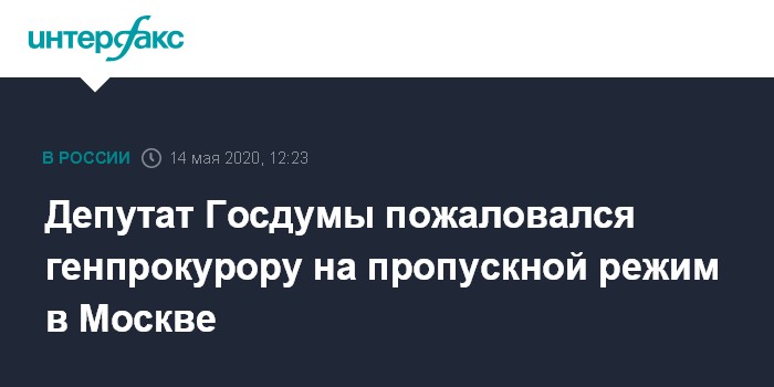 Депутат Госдумы пожаловался генпрокурору на пропускной режим в Москве