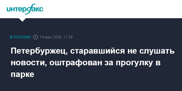 Москва. 14 мая. INTERFAX.RU - Петроградский суд Петербурга привлек к административной ответственности местного жителя, который гулял в парке вопреки введенным из-за коронавируса ограничениям, сообщила в четверг объединенная пресс-служба городских судов.