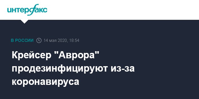 Москва. 14 мая. INTERFAX.RU - В Санкт-Петербурге в пятницу пройдет дезинфекция крейсера "Аврора", а также зданий и помещений Нахимовского военно-морского училища, сообщает Клуб моряков-подводников и ветеранов ВМФ.