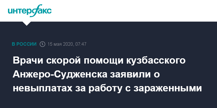Москва. 15 мая. INTERFAX.RU - Проверка организована после публикаций в СМИ информации о невыплате медикам Анжеро-Судженска (Кемеровская область) средств за работу с зараженными коронавирусом, сообщили агентству "Интерфакс" в пресс-службе областной прокуратуры в пятницу.