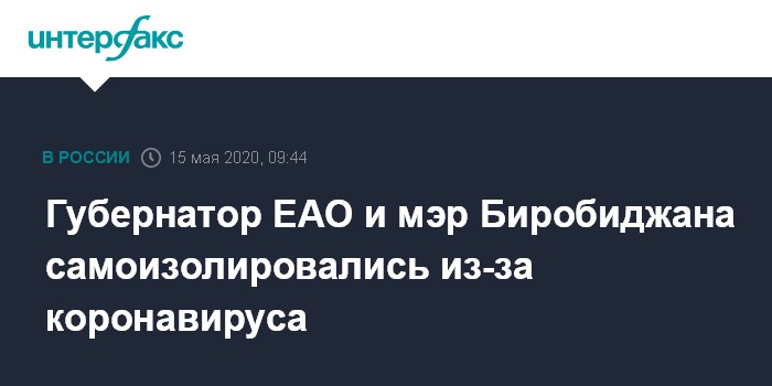 Москва. 15 мая. INTERFAX.RU - Губернатор Еврейской автономной области Ростислав Голдштейн и мэр столицы региона Биробиджана Александр Головатый по предписанию главного санитарного врача области ушли на самоизоляцию из-за выявления коронавируса в оперштабе, сообщает пресс-служба правительства ЕАО.