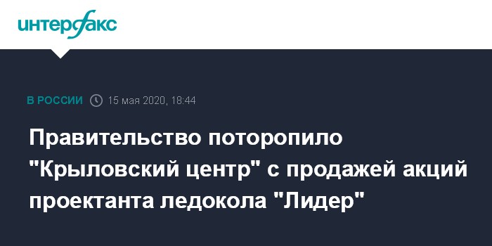 Правительство поторопило "Крыловский центр" с продажей акций проектанта ледокола "Лидер"