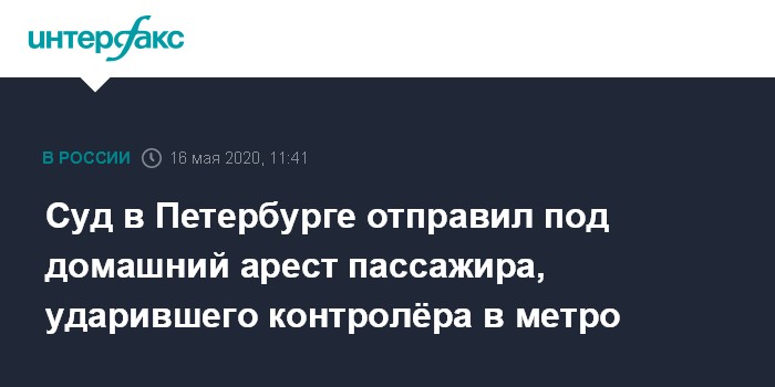 Москва. 16 мая. INTERFAX.RU - Кировский районный суд Петербурга назначил домашний арест пассажиру, который ударил контролера в метро за просьбу надеть маску.
