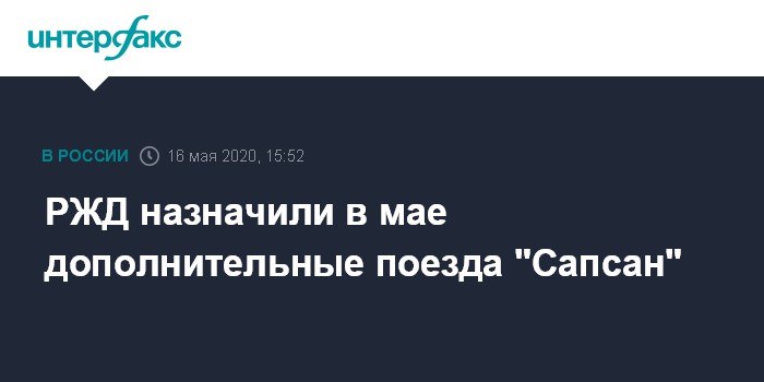 "Для соблюдения социальной дистанции при рассадке в вагонах в связи со спросом на перевозки между Москвой и Санкт-Петербургом РЖД назначает дополнительные поезда "Сапсан" на отдельные календарные даты мая", - сказали в РЖД.