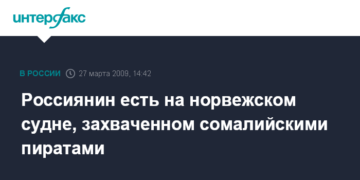 Москва. 27 марта. INTERFAX.RU - Посольство России в Норвегии имеет сведения об одном гражданине России, который находился на норвежском судне, захваченном накануне пиратами у берегов Сомали.