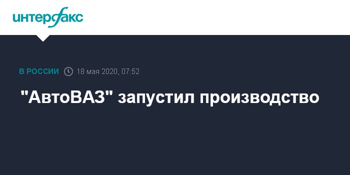 Москва. 18 мая. INTERFAX.RU - АО "АвтоВАЗ" в понедельник возобновил производство автомобилей, остановленное 29 апреля, сообщили агентству "Интерфакс" на заводе.