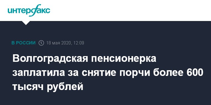 Москва. 18 мая. INTERFAX.RU - В городе Дубовки Волгоградской области 58-летняя женщина лишилась 620 тыс. рублей, поверив мошенникам-целителям.