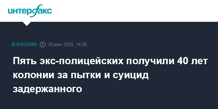 Москва. 18 мая. INTERFAX.RU - Нижнекамский городской суд в Татарстане огласил приговор пятерым бывшим сотрудникам УМВД по Нижнекамскому району, признанным виновными в пытках задержанных; экс-полицейские в общей сложности получили 40 лет колонии.
