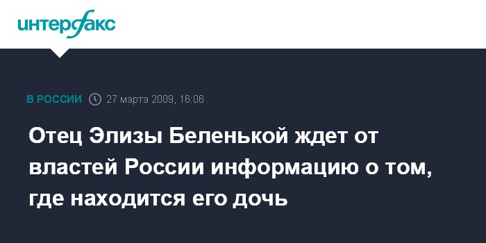 Отец Элизы Беленькой ждет от властей России информацию о том, где находится его дочь