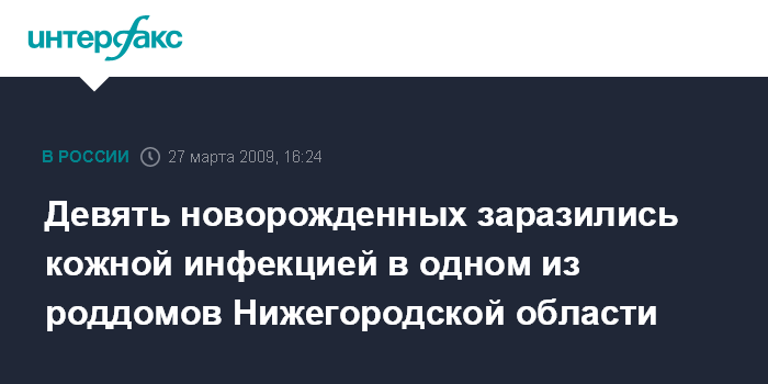 Москва. 27 марта. INTERFAX.RU - В физиологическом отделении Павловского родильного дома (Павлово, Нижегородская область) зарегистрирована вспышка гнойно-септической инфекции (ГСИ) среди новорожденных.