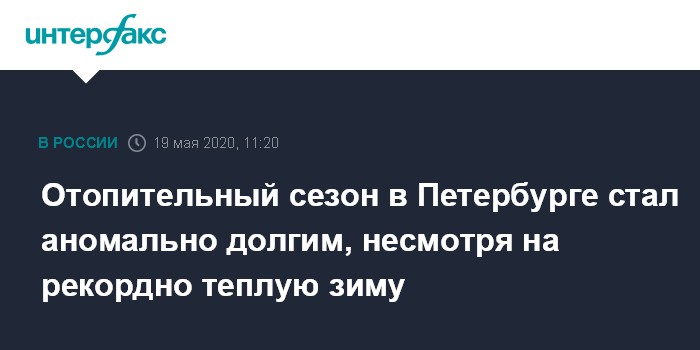 Москва. 19 мая. INTERFAX.RU - Текущий отопительный сезон в Санкт-Петербурге уже стал самым продолжительным как минимум за 40 лет.