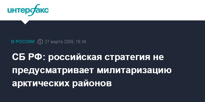 Москва. 27 марта. INTERFAX.RU - "Основы государственной политики РФ в Арктике на период до 2020 года" не предполагают милитаризацию региона, заявляют в Совете безопасности. "Вопрос милитаризации Арктики не стоит. Акцент делается на создании активно функционирующей системы береговой охраны, опережающее развитие пограничной инфраструктуры Арктической зоны России, сил и средств пограничных органов, а также на поддержание необходимой группировки войск общего назначения вооруженных сил России", - говорится в сообщении пресс-службы Совета безопасности РФ, поступившем в пятницу в "Интерфакс".