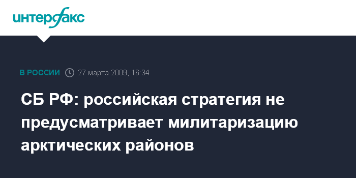 СБ РФ: российская стратегия не предусматривает милитаризацию арктических районов