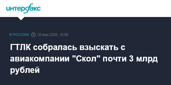 ГТЛК собралась взыскать с авиакомпании "Скол" почти 3 млрд рублей
