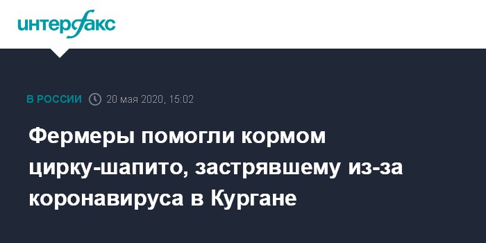 Москва. 20 мая. INTERFAX.RU - Фермеры и предприниматели ответили на призыв властей Курганской области помочь с кормами животным из цирка-шапито, который из-за ситуации с COVID-19 с середины марта не может выехать из Кургана, сообщает в среду региональный оперштаб.