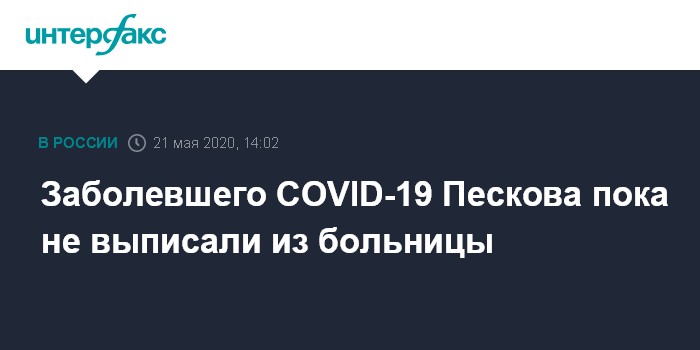 Москва. 21 мая. INTERFAX.RU - Пресс-секретарь президента РФ Дмитрий Песков, у которого выявлен коронавирус, начинает выздоравливать, но пока остается в больнице.