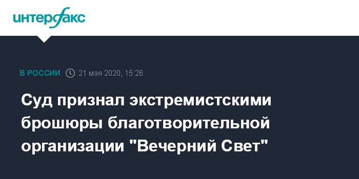 Суд признал экстремистскими брошюры благотворительной организации "Вечерний Свет"