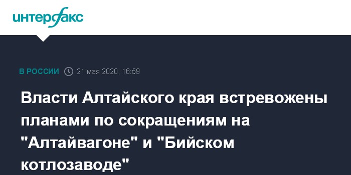 Власти Алтайского края встревожены планами по сокращениям на "Алтайвагоне" и "Бийском котлозаводе"