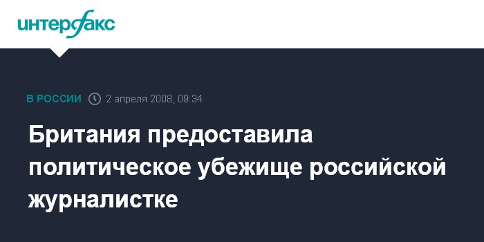 "Британия предоставила политическое убежище журналистке, которая покинула Россию, заявив, что ее жизни угрожает опасность из-за того, что она критиковала Кремль", - отмечает Эй-Би-Си.