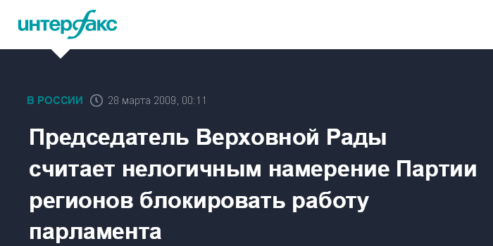Киев. 28 марта. ИНТЕРФАКС-УКРАИНА - Председатель Верховной Рады Украины Владимир Литвин считает нелогичным намерение фракции Партии регионов блокировать работу парламента, протестуя против политики правительства.
