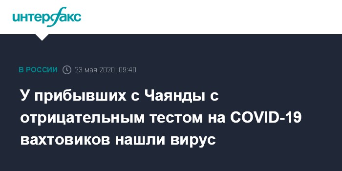 Москва. 23 мая. INTERFAX.RU - Повторные анализы на наличие коронавирусной инфекции у 62 вахтовиков, прибывших с Чаяндинского месторождения (Якутия) в Томский обсерватор, оказались положительными, сообщает пресс-служба областной администрации.