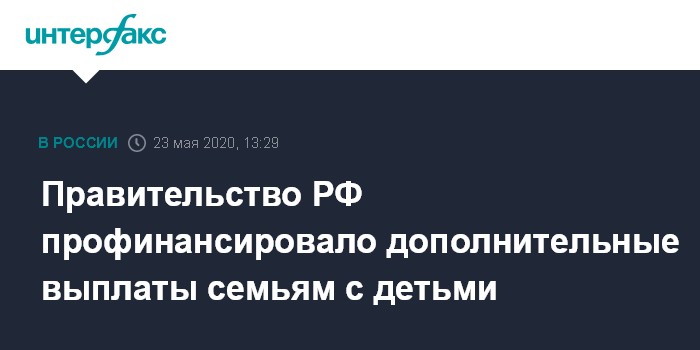 Москва. 23 мая. INTERFAX.RU - Премьер-министр России Михаил Мишустин подписал распоряжение о выделении из резервного фонда кабинета министров средств на дополнительные выплаты семьям с детьми до трех и до 16 лет.