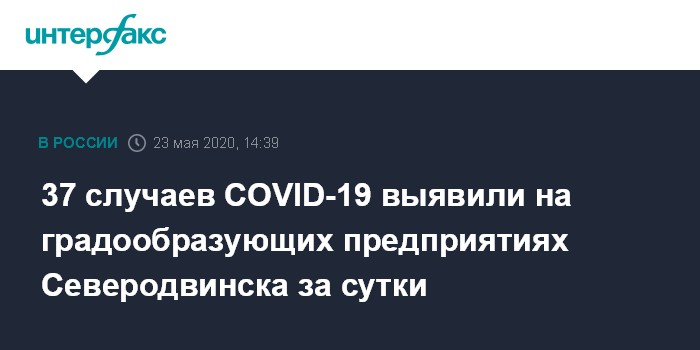 Москва. 23 мая. INTERFAX.RU - Среди сотрудников градообразующих предприятий Северодвинска (Архангельская область) за сутки выявлено 37 случаев заболевания коронавирусом, сообщил региональный оперштаб в субботу.