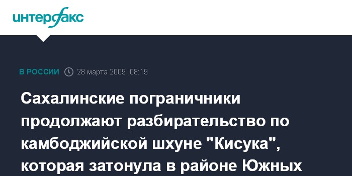 Южно-Сахалинск. 28 марта. ИНТЕРФАКС - ДАЛЬНИЙ ВОСТОК - В отношении двух матросов, спасенных с затонувшей в районе Южных Курил камбоджийской рыболовецкой шхуны "Кисука", сахалинские пограничники возбудили административные дела за нарушения режима госграницы РФ.