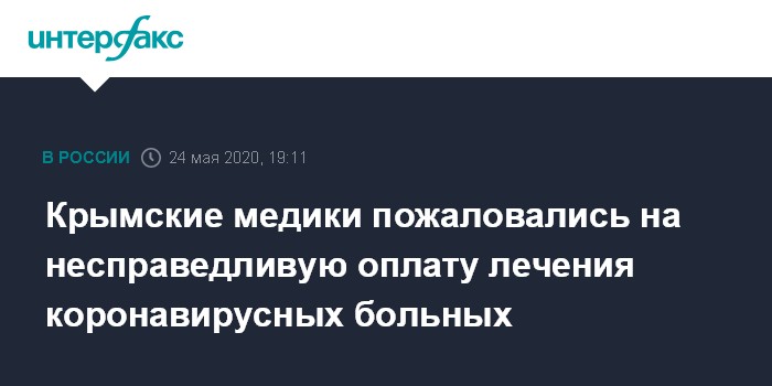 Москва. 24 мая. INTERFAX.RU - Работники одной из подстанций скорой медицинской помощи Крыма записали видеообращение к главе республики Сергею Аксенову с жалобой на выплату надбавок за работу с зараженными коронавирусом.