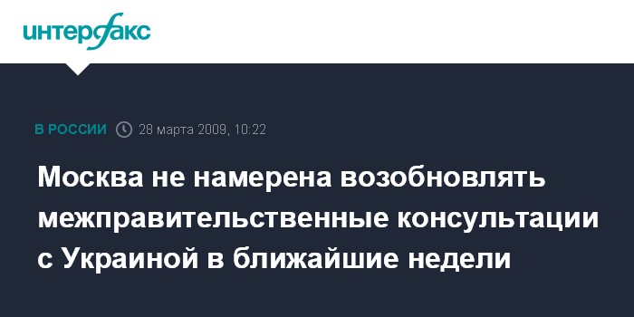 Москва. 28 марта. INTERFAX.RU - В ближайшее время вряд ли стоит ожидать возобновления межправительственных консультаций России и Украины, считают в Кремле.