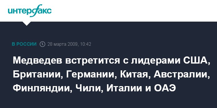 Медведев встретится с лидерами США, Британии, Германии, Китая, Австралии, Финляндии, Чили, Италии и ОАЭ