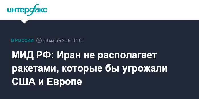 Москва. 28 марта. INTERFAX.RU - Иран сейчас не располагает технологиями, способными создать ракетные вооружения, угрожающие не только США, но и Европе, заявил замминистра иностранных дел РФ Сергей Рябков.