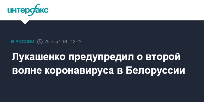 Москва. 25 мая. INTERFAX.RU - Президент Белоруссии Александр Лукашенко призвал серьезно готовиться ко второй волне эпидемии COVID-19, но надеется, что республику "сия беда минет".
