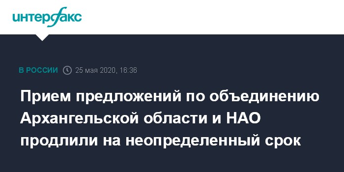 Москва. 25 мая. INTERFAX.RU - Рабочие группы в Архангельской области и Ненецком автономном округе (НАО) по вопросу объединения регионов продлили прием предложений от жителей на неопределенны срок, до парламентских слушаний, сообщил "Интерфаксу" в понедельник председатель рабочей группы в Поморье Виталий Фортыгин.