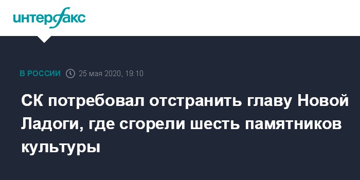 22 мая СКР предъявил обвинение в халатности двум последним руководителям Новой Ладоги, где за два года сгорели шесть объектов культурного наследия. Следствие считает, что главы администрации города не выполняли обязанности по содержанию памятников в исправном техническом, санитарном и противопожарном состоянии и не обеспечивали их охрану.