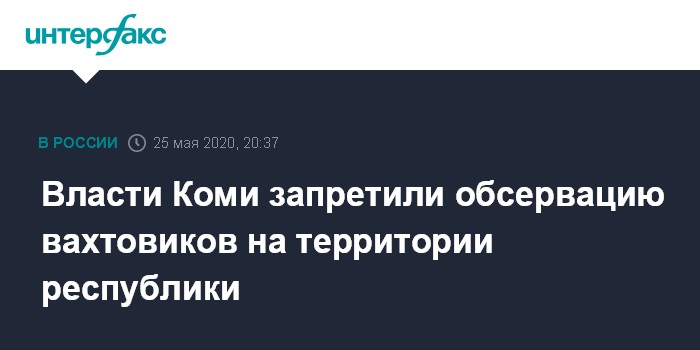 Москва. 25 мая. INTERFAX.RU - Власти Коми на фоне распространения коронавируса запретили работодателям создавать обсерваторы для вахтовиков на территории республики, сообщил врио главы региона Владимир Уйба.