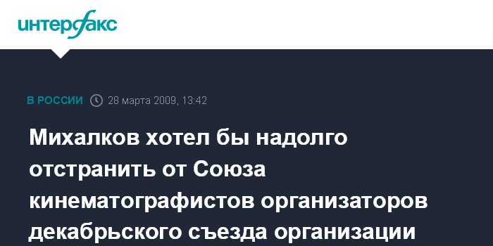 Москва. 28 марта. INTERFAX.RU - Кинорежиссер Никита Михалков предлагает на три года отстранить от руководства организации инициаторов декабрьского съезда СКР.