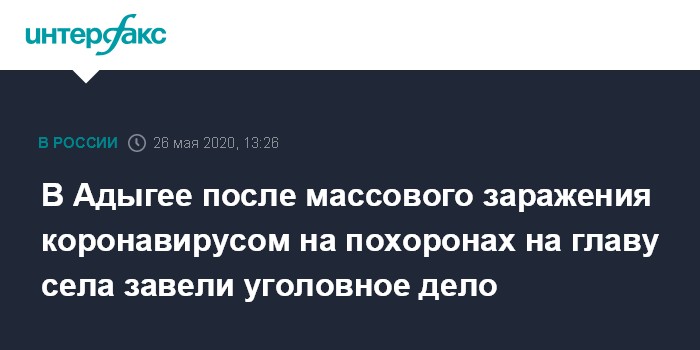 О заражении более 150 участников похорон в ауле было объявлено 19 мая. На следующий день подал в отставку глава Красногвардейского района Альберт Османов.